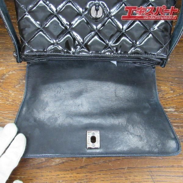 レア ヴィンテージシャネル 1996年-97年 シャネル ショルダーバッグ ハンドバッグ エナメル パテントレザー 黒 辻堂店