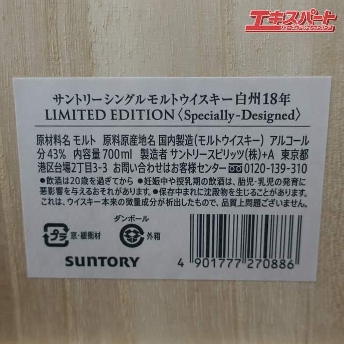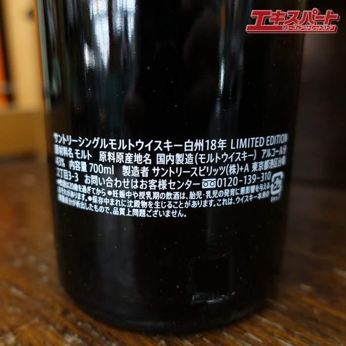【神奈川県/群馬県/埼玉県限定発送】レア 免税店限定 サントリー 白州18年 リミテッドエディション 43度 700ml 箱付 辻堂店