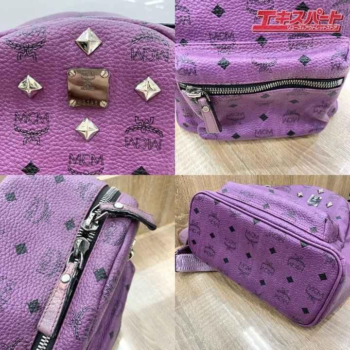 MCM エムシーエム スタッズ レザー リュックサック 紫 パープル コニャック ミスマ店 mr20251202mi03